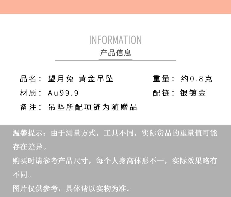 9999黃金望月兔吊墜約0.9-0.99克